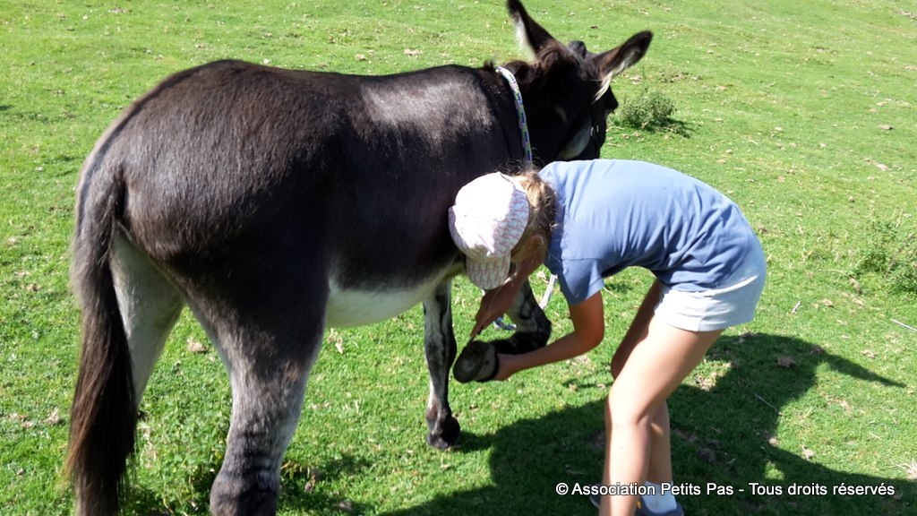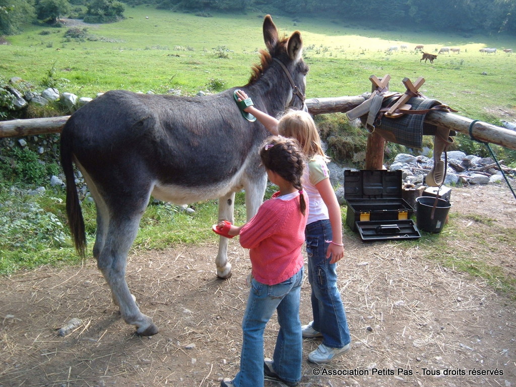 Les Petits Pas propose aux écoles, centres de loisirs et centres spécialisés une demi-journée, journée (ou plus !) de rencontre et de découverte des ânes.