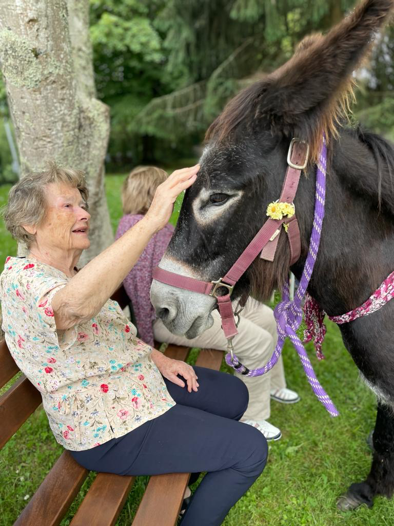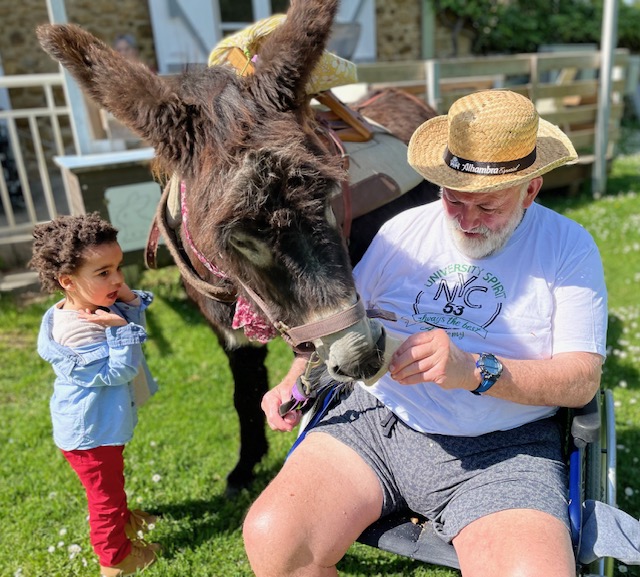 Nous souhaitons mettre en place avec ceux qui souhaite en bénéficier, des moments de rencontre, de partage, de détente et de plaisir, construit grâce à l’étroite collaboration établit entre l’ânier (projet d’accueil) et l’équipe d’accompagnateurs (projet déterminant l’intention de l’activité). Notre connaissance de l’âne en général, acquise depuis de nombreuses années passées quotidiennement à leur côté, le professionnalisme de nos ânes et vos compétentes dans le domaine de l’accompagnement des personnes en situation de handicap, nous permettrons de mettre en place des séances de médiation à la hauteur des besoins et des attentes de vos résidents.